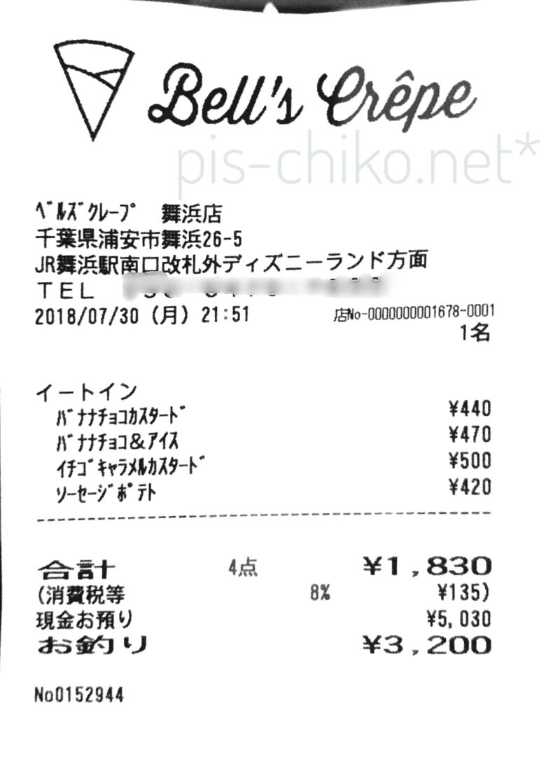 - 夜食:クレープ1,830円